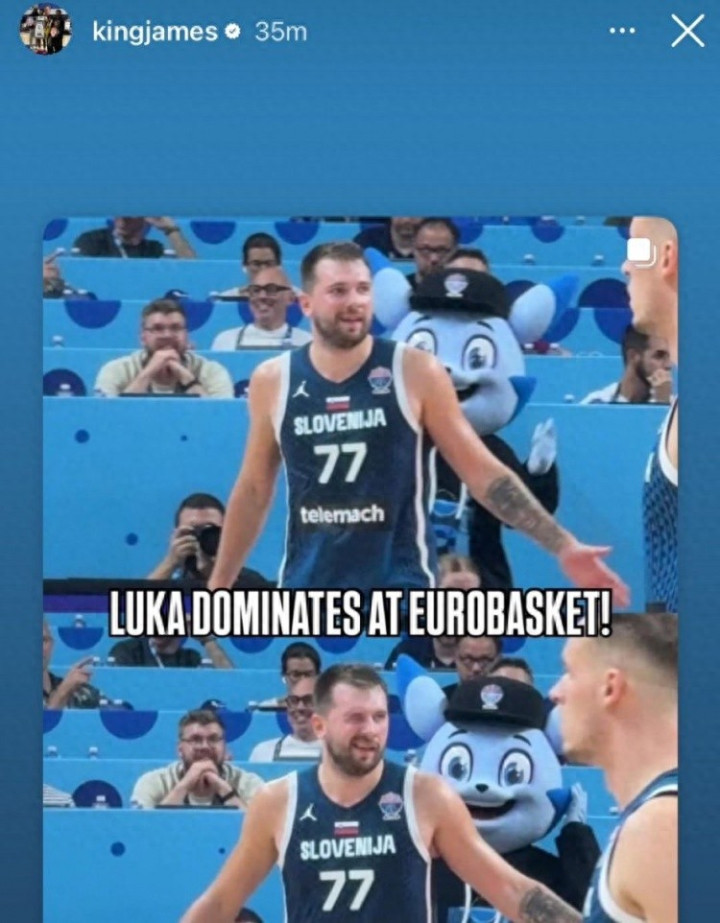 詹姆斯转发东契奇欧锦赛高光集锦 封面图配文: 卢卡称霸欧锦赛!