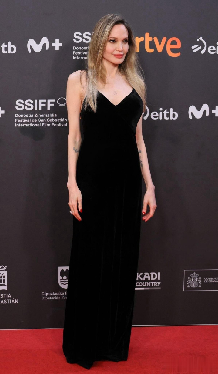 安吉丽娜·朱莉今日现身西班牙圣塞瓦斯蒂安电影节,宣传新片《时装》。巨星把一条简简单单的丝绒小黑裙,穿出了两米气场,每张生图都美得摄人心魄!