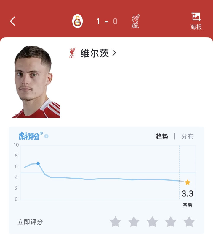 欧冠联赛第二轮,利物浦客场0-1不低加拉塔萨雷,各项赛事遭遇两连败。本场比赛维尔茨表现平平,再度引发热议。点击给维尔茨的表现打分>>