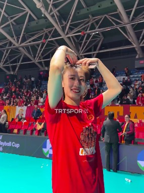 值得注意的是,欧联杯冠军也是王媛媛留洋生涯的首个冠军,赛后这位28岁的女排国手激动向球迷比爱心庆祝。