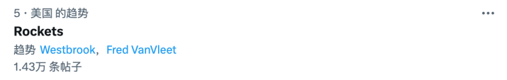 在范弗里特重伤的消息传来之后,威斯布鲁克第一时间和火箭队一起冲上了热搜。