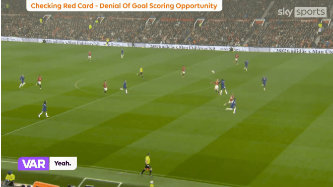 姆贝莫带球冲向那个球,而防守队员并没有在那里进行防守。这显然是一个进球机会。因此,红牌就出示了。”
