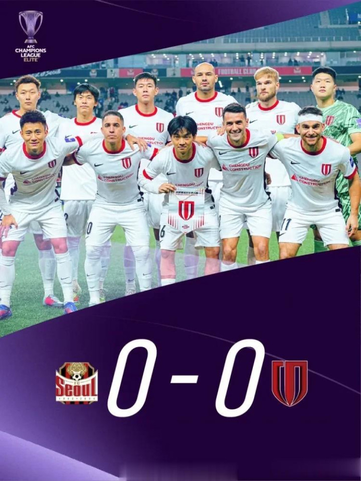 亚冠第四轮‖ 中超准冠军一败再败排名垫底, 蓉城0: 0首尔