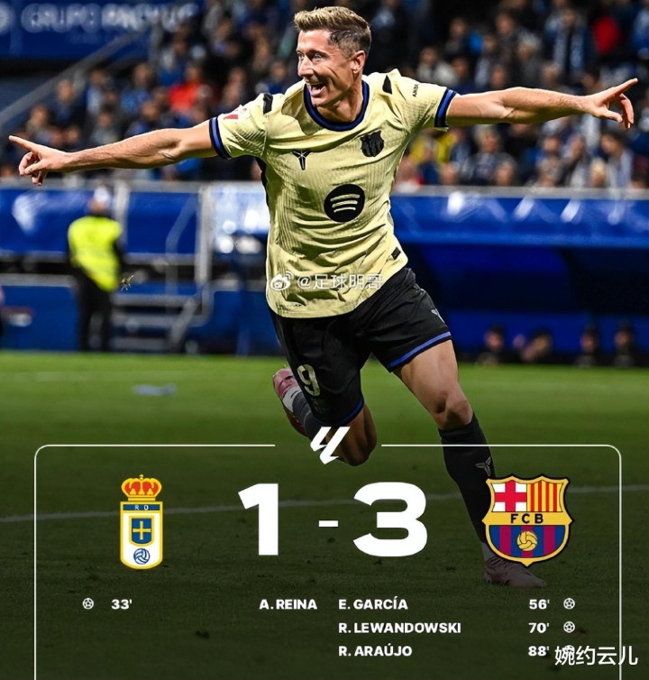 值得一提的是本场比赛莱万替补建功,埃里克-加西亚和阿劳霍各进一球。赛后积分榜方面,皇马积18分领跑,巴萨联赛三连胜积16分位居第二位,奥维耶多积3分第十八位,所以此役巴萨也仅仅是虐菜成功而已。